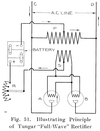 In the shop, either the constant-potential, or the constant-current system of charging may be used. Up to the present time, the constant current system has been used in the majority of shops. The equipment for constant current charging uses a lamp bank or rheostat to regulate the charging current where direct current is available, and a rectifier or motor-generator set where only alternating current is available. Recently, the Hobart Brothers Company of Troy, Ohio, has put on the market a constant potential motor-generator set which gives the same desirable "tapering" charge as does the constant voltage generator on the car. This set will be described later.