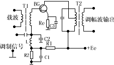 图2是发射极调幅电路,其原理与基极调幅类似,因为加到基极和发射极之间的电压为1伏左右,而集电极电源电压有十几伏至几十伏,调制电压对集电极电路的影响可忽略不计,因此射极调幅与基极调幅的工作原理和特性相似。
